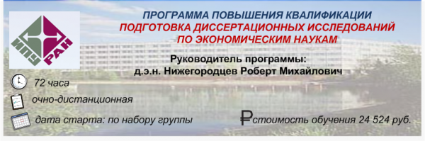 Программа повышения квалификации "Подготовка диссертационных исследований по экономическим наукам реализуется лабораторией " Экономической динамики и управления ииновациями".