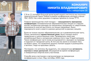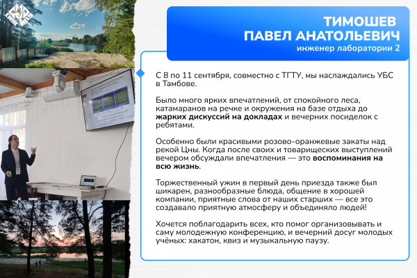 Каждый участник увёз с собой ценную частичку конференции. Мы собрали несколько отзывов, чтобы показать УБС-2025 глазами тех, кто провёл эти замечательные четыре дня в Тамбове!