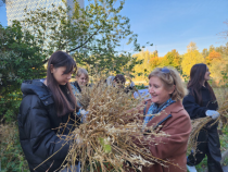 После теоретической части ребята отправились на сбор урожая. Напомним, что весной они засеяли малый полигон семенами овса «Залп», пшеницы «Багира», гороха «Немчиновский 50», а также картофелем «Василек».
