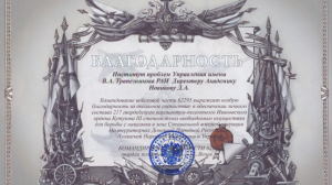 Благодарность Институту от командования ВЧ 62295 30 сентября 2025 |