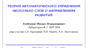 Теория автоматического управления: несколько слов о направлениях развития Научный доклад М.В. Хлебникова на Ученом совете 30 сентября 2025 |
