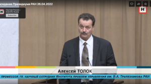 А. В. Толок выступил на заседании Президиума РАН Тема заседания – взаимодействие РАН с промышленностью 29 апреля 2022 |