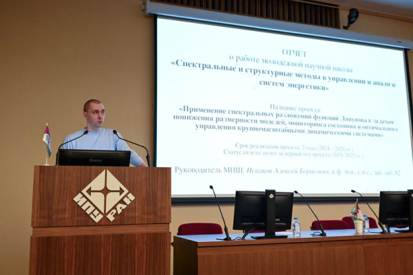 Май 2025. Прошла успешная защита Молодёжной научной школы "Спектральные и структурные методы в управлении и анализе систем энергетики" под руководством А.Б. Искакова. В состав МНШ вошёл студент РГУ и новый сотрудник лаборатории Кирилл Мананников.